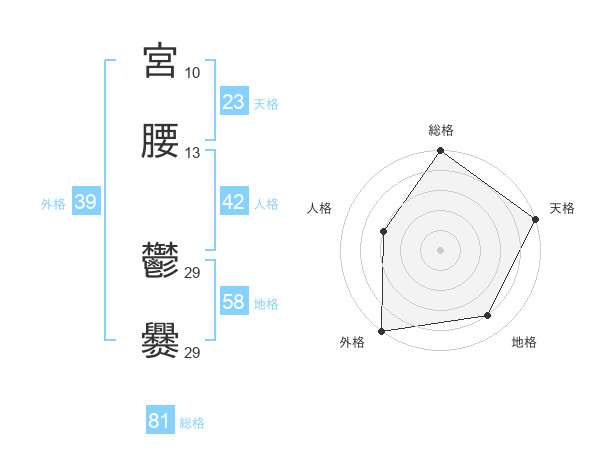 宮腰 鬱爨さんの総格は81画の5点!