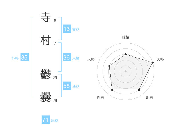 寺村 鬱爨さんの総格は71画の3点!