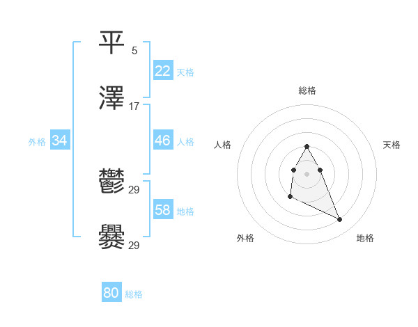 平澤 鬱爨さんの総格は80画の2点