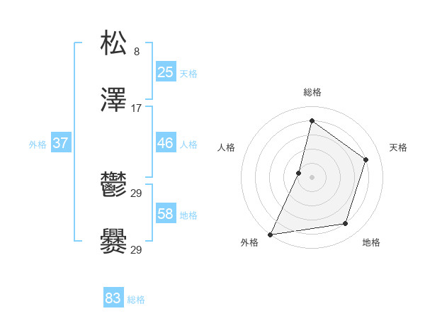 松澤 鬱爨さんの総格は83画の4点