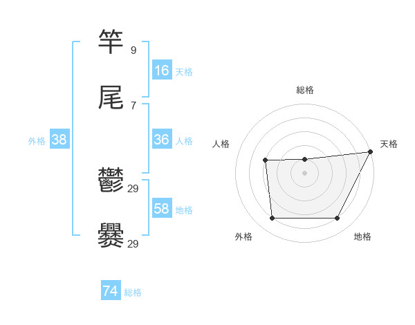 竿尾 鬱爨さんの総格は74画の1点!