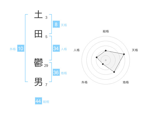 土田 鬱男さんを姓名の画数から五運を鑑定