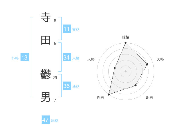 寺田 鬱男さんを姓名の画数から五運を鑑定