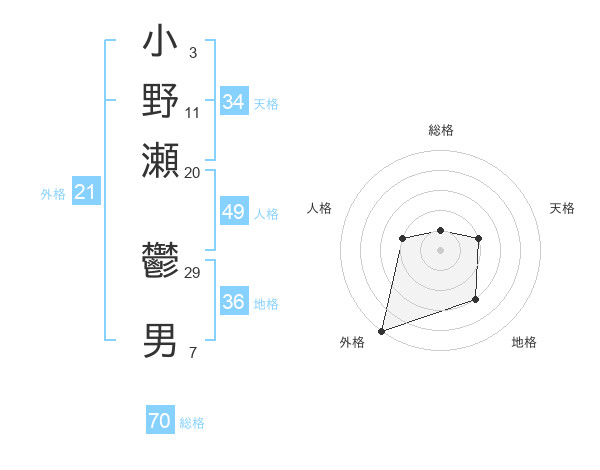 小野瀬 鬱男さんを姓名の画数から五運を鑑定