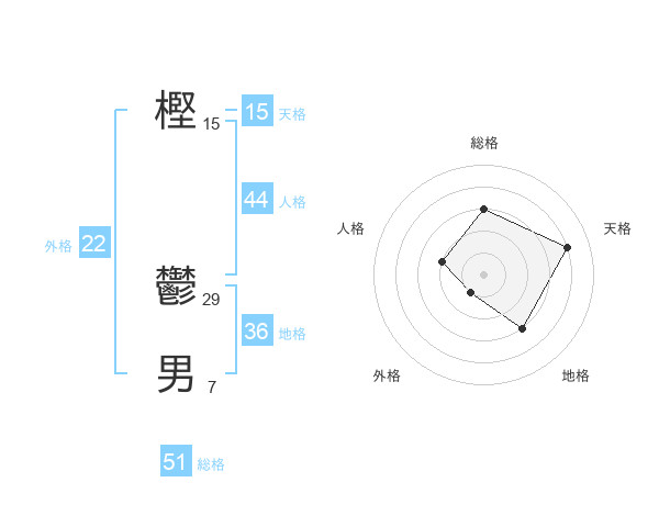 樫 鬱男さんの総格は51画の3点!