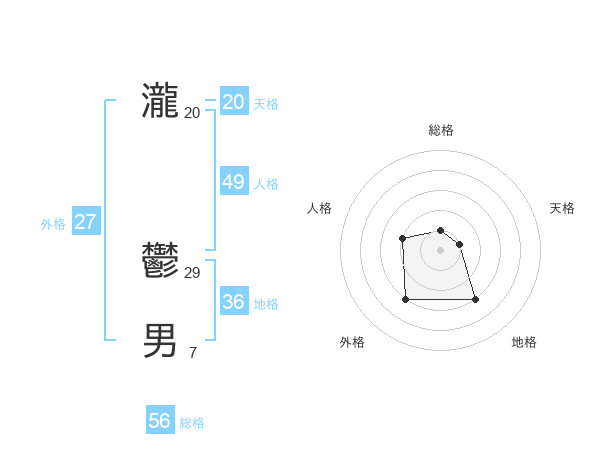 瀧 鬱男さんの総格は56画の1点!