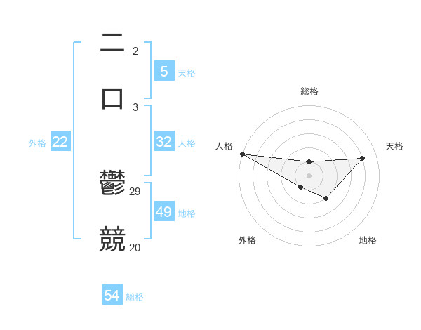 二口 鬱競さんを姓名の画数から五運を鑑定