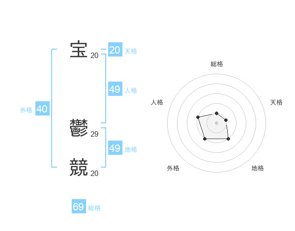 宝 鬱競さんの総格は69画の1点!