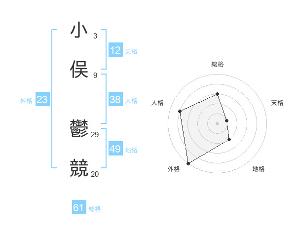 小俣 鬱競さんの外格は23画の5点!