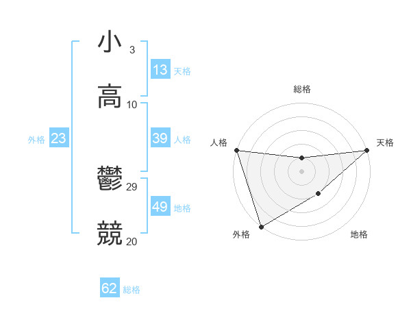 小高 鬱競さんを姓名の画数から五運を鑑定