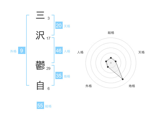 三沢 鬱自さんを姓名の画数から五運を鑑定