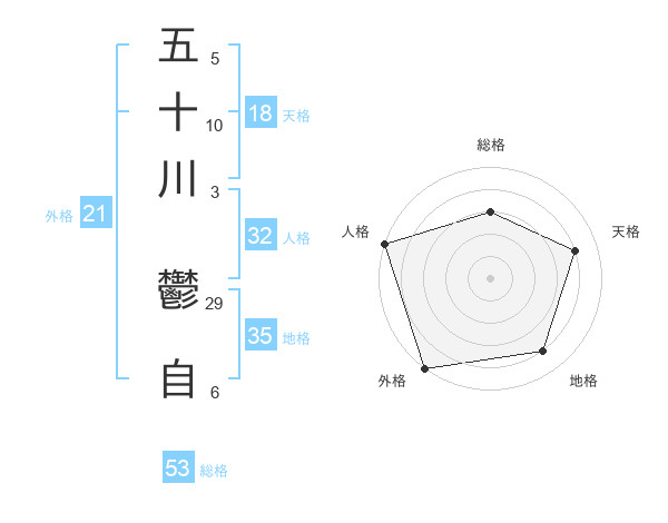 五十川 鬱自さんを姓名の画数から五運を鑑定