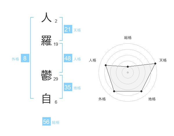 人羅 鬱自さんの天格は21画の5点!