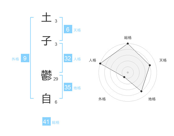 土子 鬱自さんを姓名の画数から五運を鑑定
