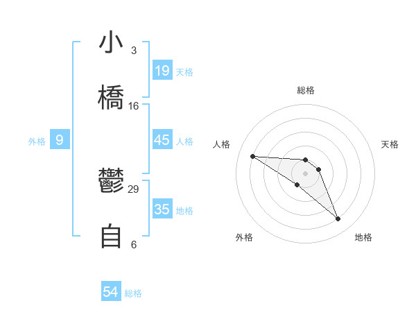 小橋 鬱自さんの総格は54画の1点!