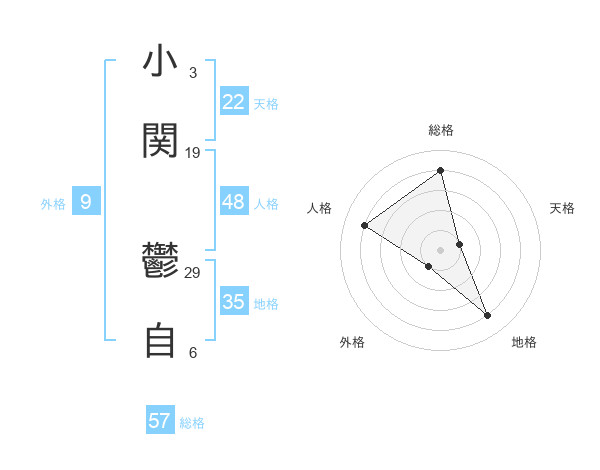 小関 鬱自さんを姓名の画数から五運を鑑定