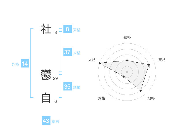 社 鬱自さんの天格は8画の4点!