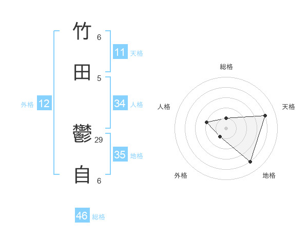 竹田 鬱自さんの天格は11画の4点!