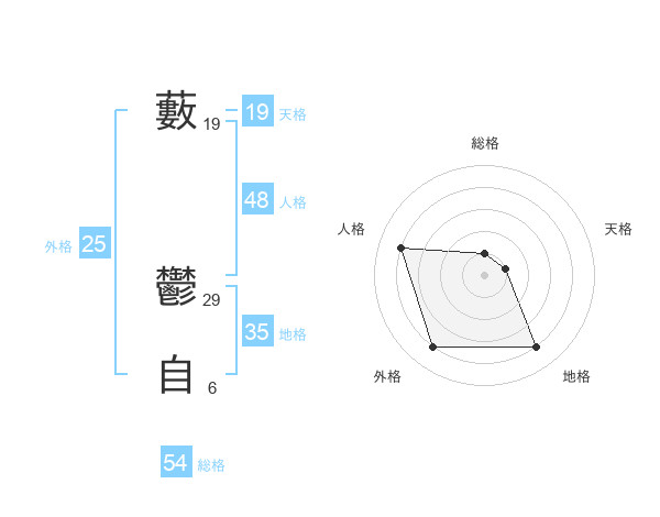 藪 鬱自さんの総格は54画の1点!