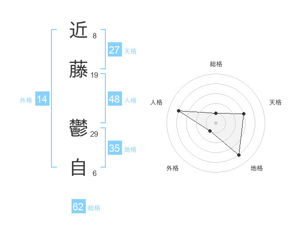 近藤 鬱自さんを姓名の画数から五運を鑑定