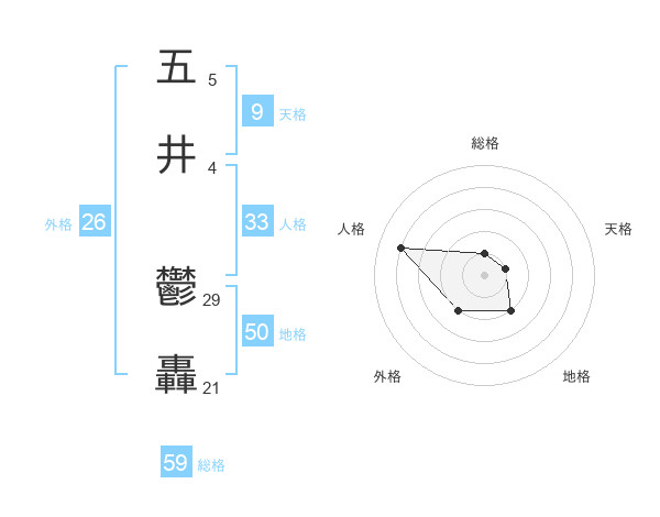 五井 鬱轟さんの総格は59画の1点!
