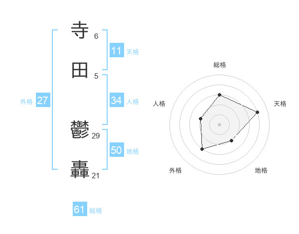 寺田 鬱轟さんを姓名の画数から五運を鑑定