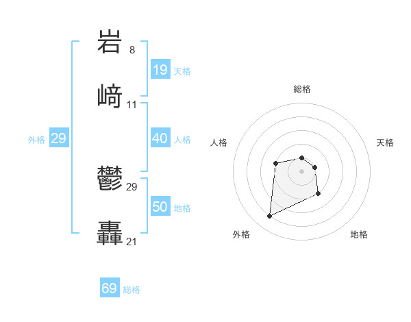 岩﨑 鬱轟さんを姓名の画数から五運を鑑定
