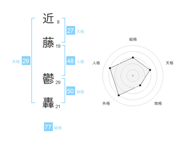 近藤 鬱轟さんを姓名の画数から五運を鑑定