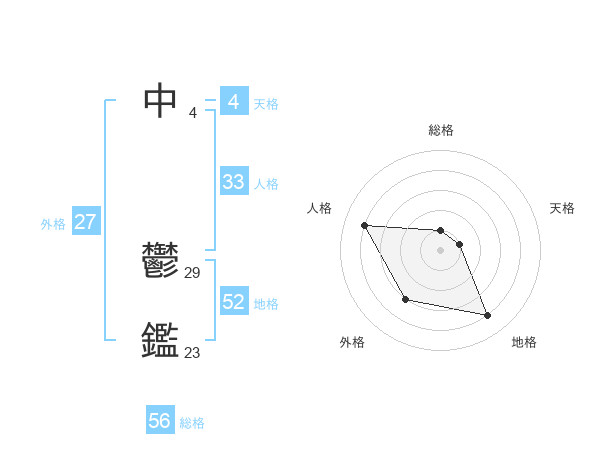 中 鬱鑑さんの総格は56画の1点!