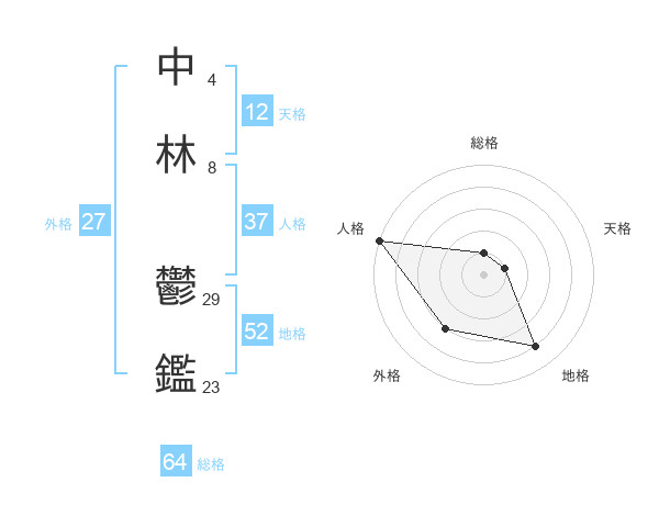 中林 鬱鑑さんを姓名の画数から五運を鑑定