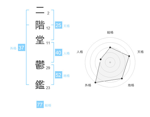 二階堂 鬱鑑さんの外格は37画の5点!