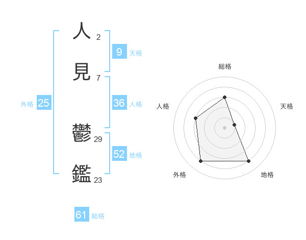人見 鬱鑑さんを姓名の画数から五運を鑑定