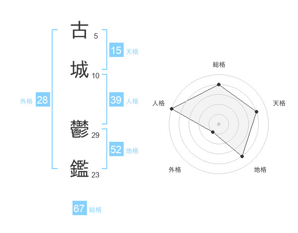 古城 鬱鑑さんを姓名の画数から五運を鑑定
