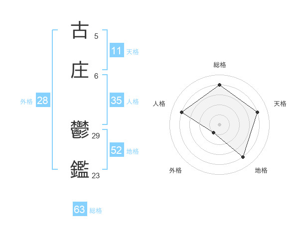 古庄 鬱鑑さんの総格は63画の4点!