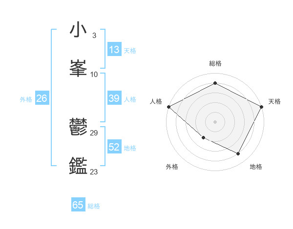小峯 鬱鑑さんを姓名の画数から五運を鑑定
