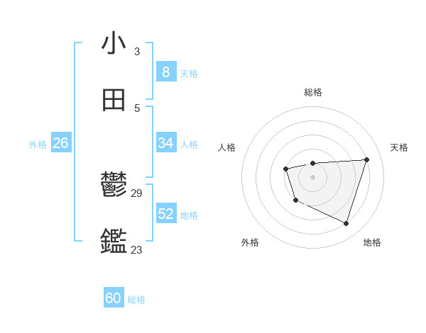 小田 鬱鑑さんの天格は8画の4点!