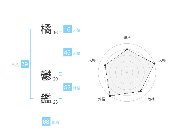 橘 鬱鑑さんを姓名の画数から五運を鑑定