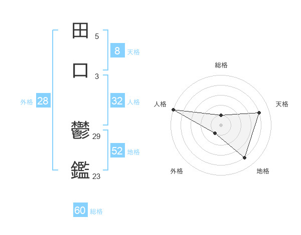田口 鬱鑑さんを姓名の画数から五運を鑑定