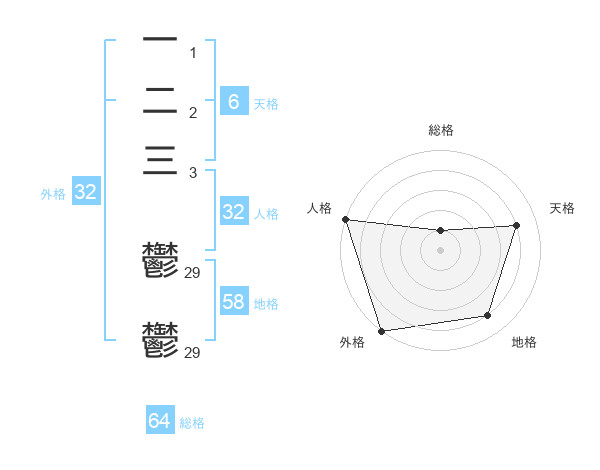 一二三 鬱鬱さんを姓名の画数から五運を鑑定