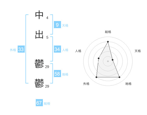 中出 鬱鬱さんを姓名の画数から五運を鑑定