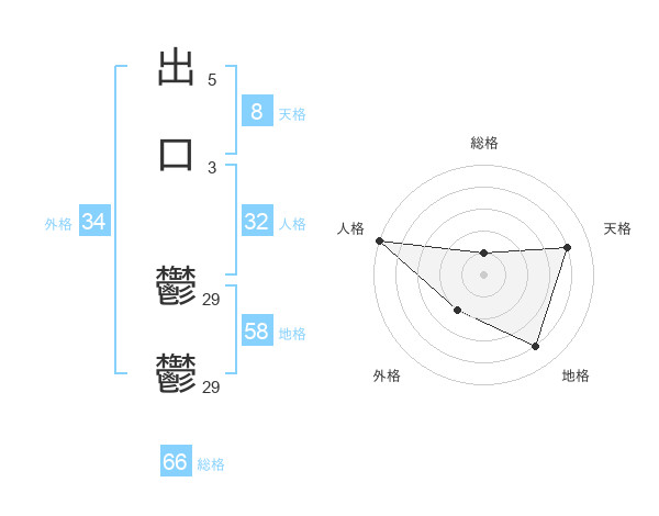 出口 鬱鬱さんの総格は66画の1点!