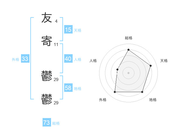 友寄 鬱鬱さんの総格は73画の4点!