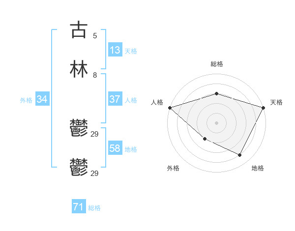 古林 鬱鬱さんを姓名の画数から五運を鑑定