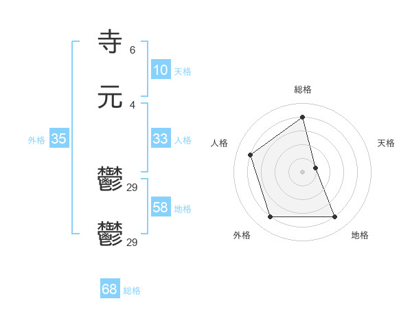 寺元 鬱鬱さんの総格は68画の4点!