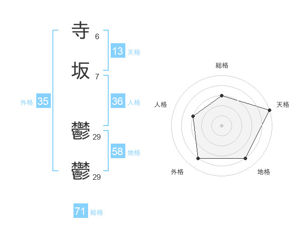寺坂 鬱鬱さんを姓名の画数から五運を鑑定