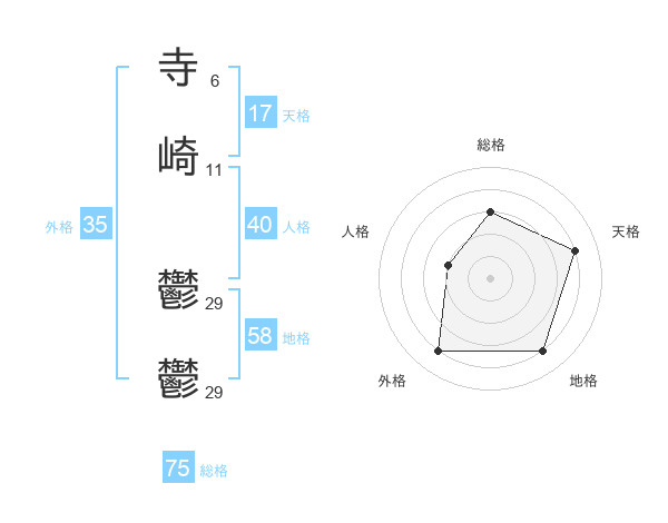 寺崎 鬱鬱さんの総格は75画の3点!
