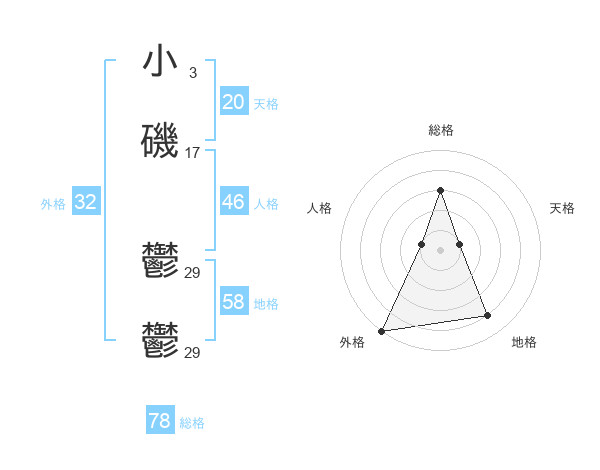 小磯 鬱鬱さんを姓名の画数から五運を鑑定