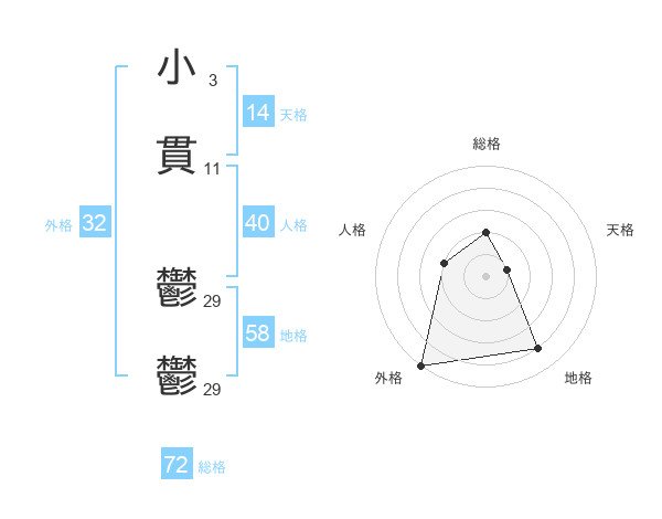 小貫 鬱鬱さんの外格は32画の5点!