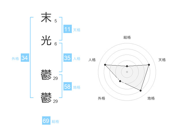 末光 鬱鬱さんの地格は58画の4点!