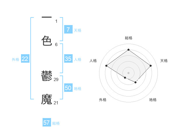 一色 鬱魔さんを姓名の画数から五運を鑑定